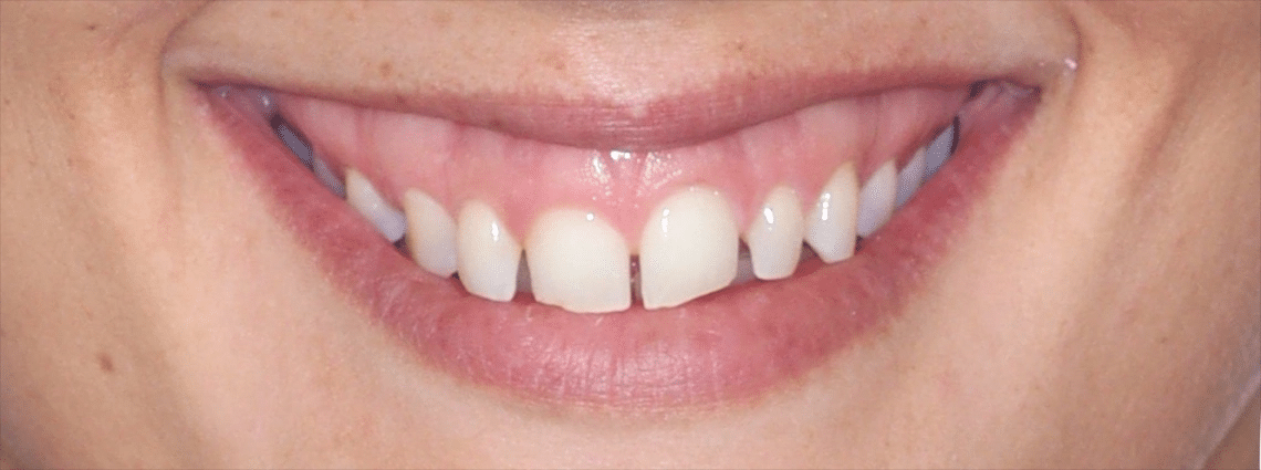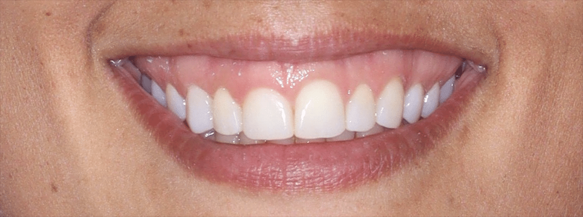 Tratamiento de estética dental realizado con carillas dentales de composite para mejorar la apariencia de los dientes de la paciente.