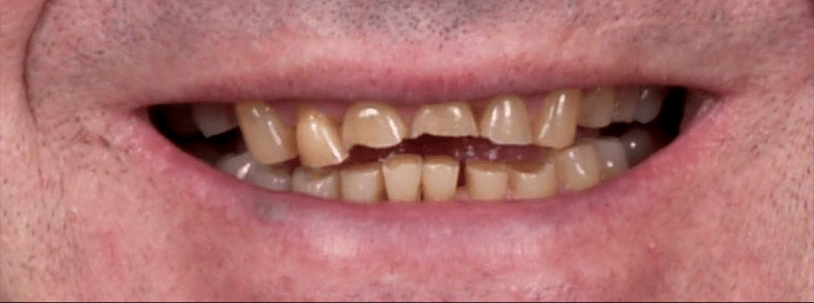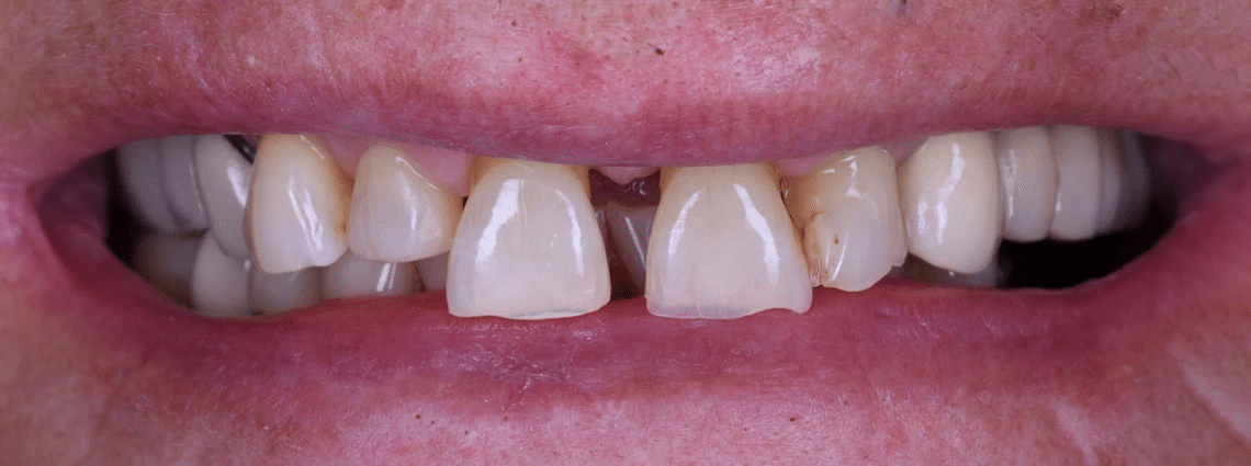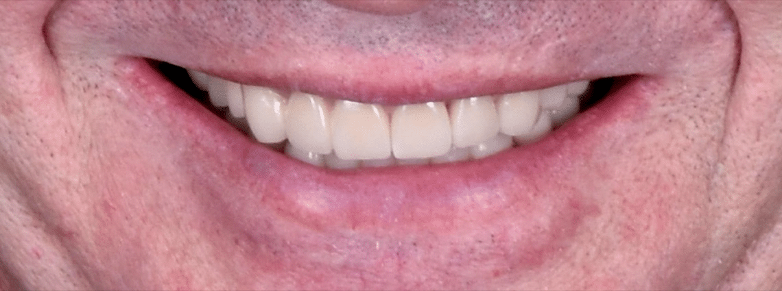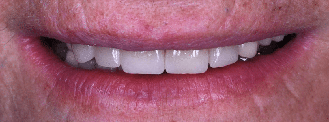 Tratamiento de prótesis dental fija sobre dientes naturales del paciente utilizando carillas y coronas de circonio (sin metal) para una completa rehabilitación.